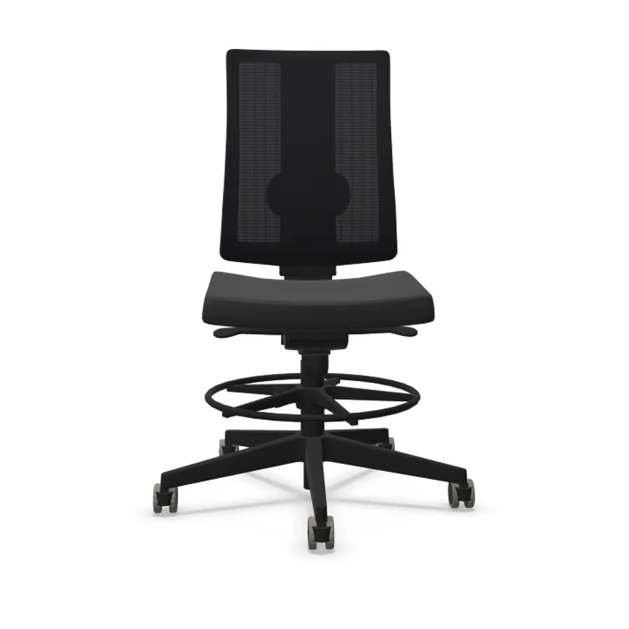 Le cadre de l’assise est fabriqué en contreplaqué de hêtre. La structure d’assise se compose de 7 couches de 10.5 mm d’épaisseur minimum. Elle est recouverte de mousse injectée (PW) de 50mm d’épaisseur double de densité 40kg / m3. La mousse du siège de bureau haut donne la sensation à l’utilisateur que l’assise est douce en position assise. La densité de mousse de la couche inférieure du siège de bureau haut garantit que le siège est souple lorsqu’il est utilisé pendant une longue période. L’effet de détection du contreplaqué est éliminé. Le siège de bureau comporte également un repose-pied, pour vous assurer un réel confort de travail. Le piètement se compose de 5 branches noires de diamètre 710 mm.