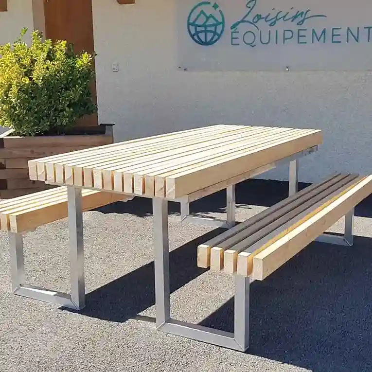 La table pique-nique bois est idéale pour aménager des espaces extérieurs conviviaux et durables. Conçue avec du bois de haute qualité, elle résiste aux intempéries et au temps, assurant ainsi une longévité optimale. Son design simple et fonctionnel s'adapte parfaitement aux parcs, jardins, et zones de repos. La table pique-nique bois offre également une capacité d’accueil confortable, permettant à plusieurs personnes de se réunir autour pour partager des moments agréables. C’est un choix judicieux pour des aménagements extérieurs esthétiques et pratiques. Nous proposons une version mélèze à plat et une version mélèze sur tranche, davantage design et originale.